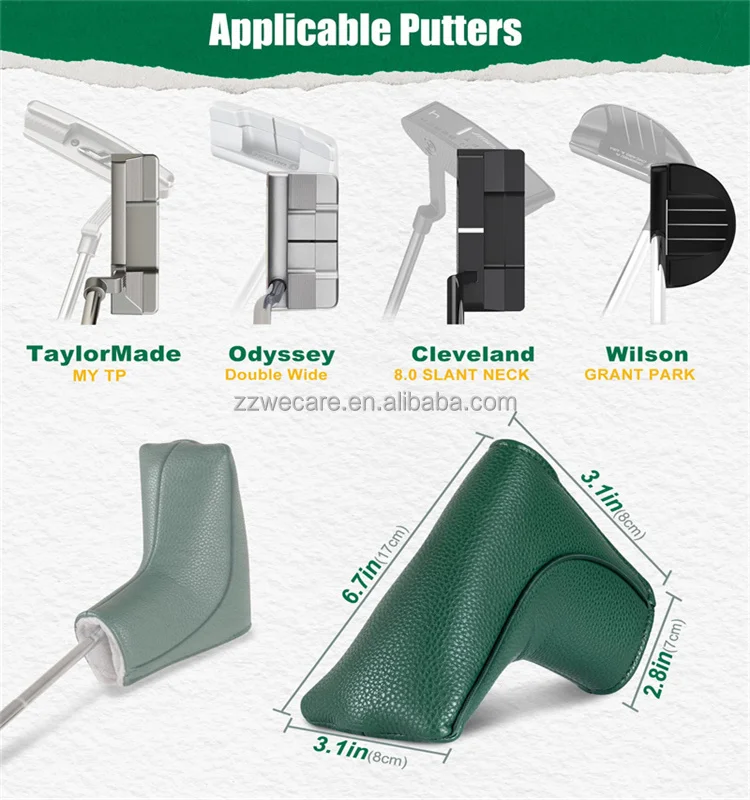 Designed specifically for blade putters, it is a tour grade PU leather headcover that's waterproof, magnetic, and sure to make a statement on the green.