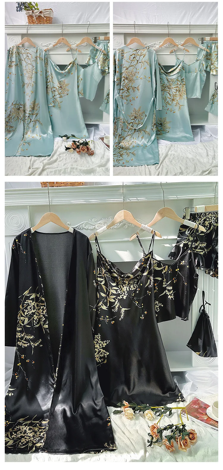 5-Piece Women's Pajamas Set Simple Thin Long
