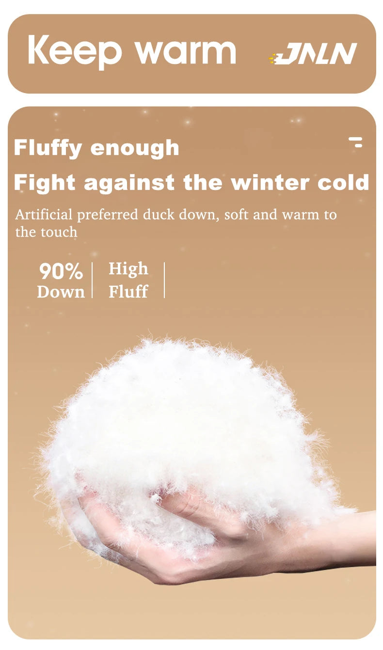 The JNLN men's down jacket is the perfect choice for those who love camping, mountain climbing and winter outdoor activities. Lightweight design, optimal warm padding, the jacket is both waterproof and windproof, helping you always feel warm and dry. The convenient hood provides maximum protection against all weather conditions. High-quality, durable and lightweight material brings a feeling of comfort all day long. Experience warmth and dynamic style with the JNLN Down Jacket!