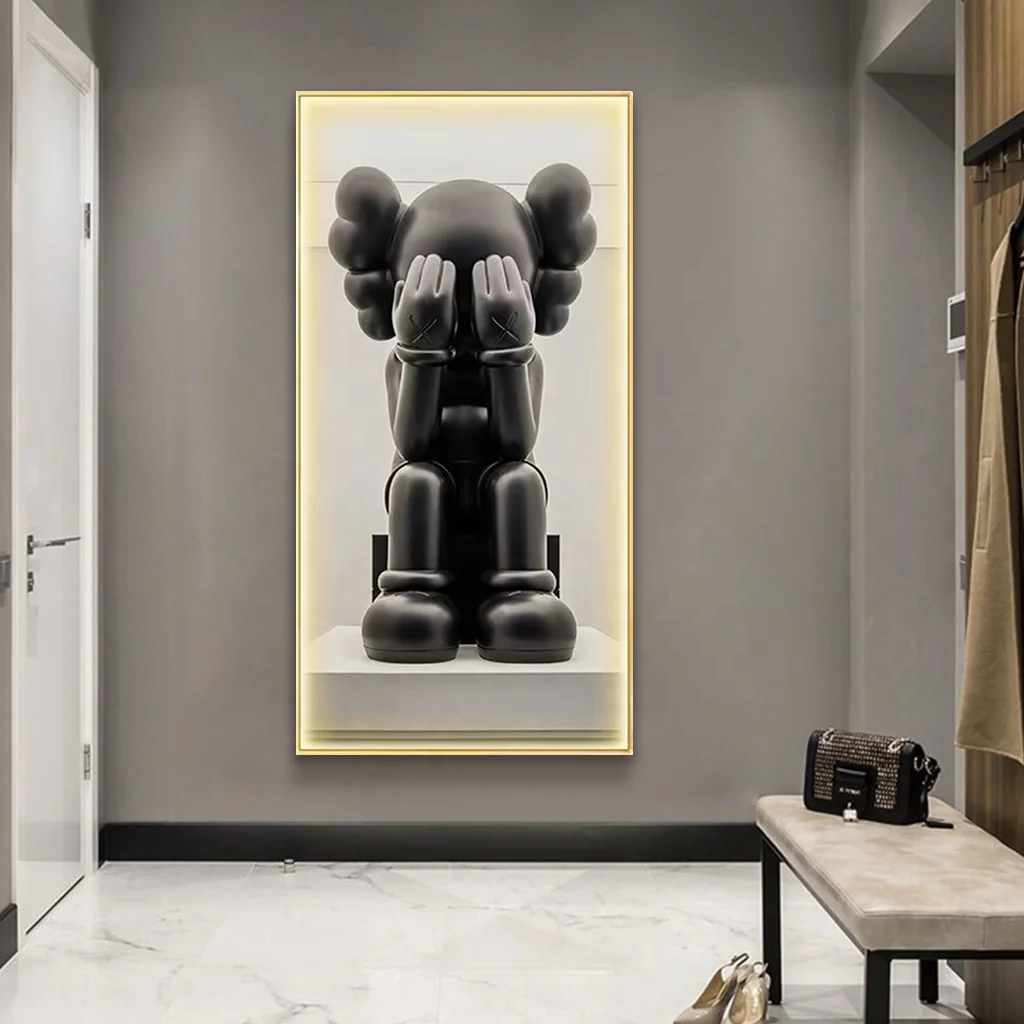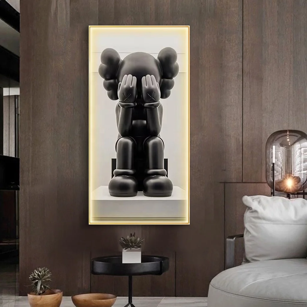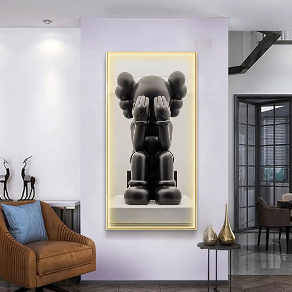 Modern Living Room Decoration LED Wall Lamp UV Printed Art Bear Poster Artwork Crystal Porcelain Painting Animal Decoration
