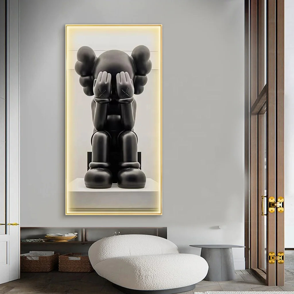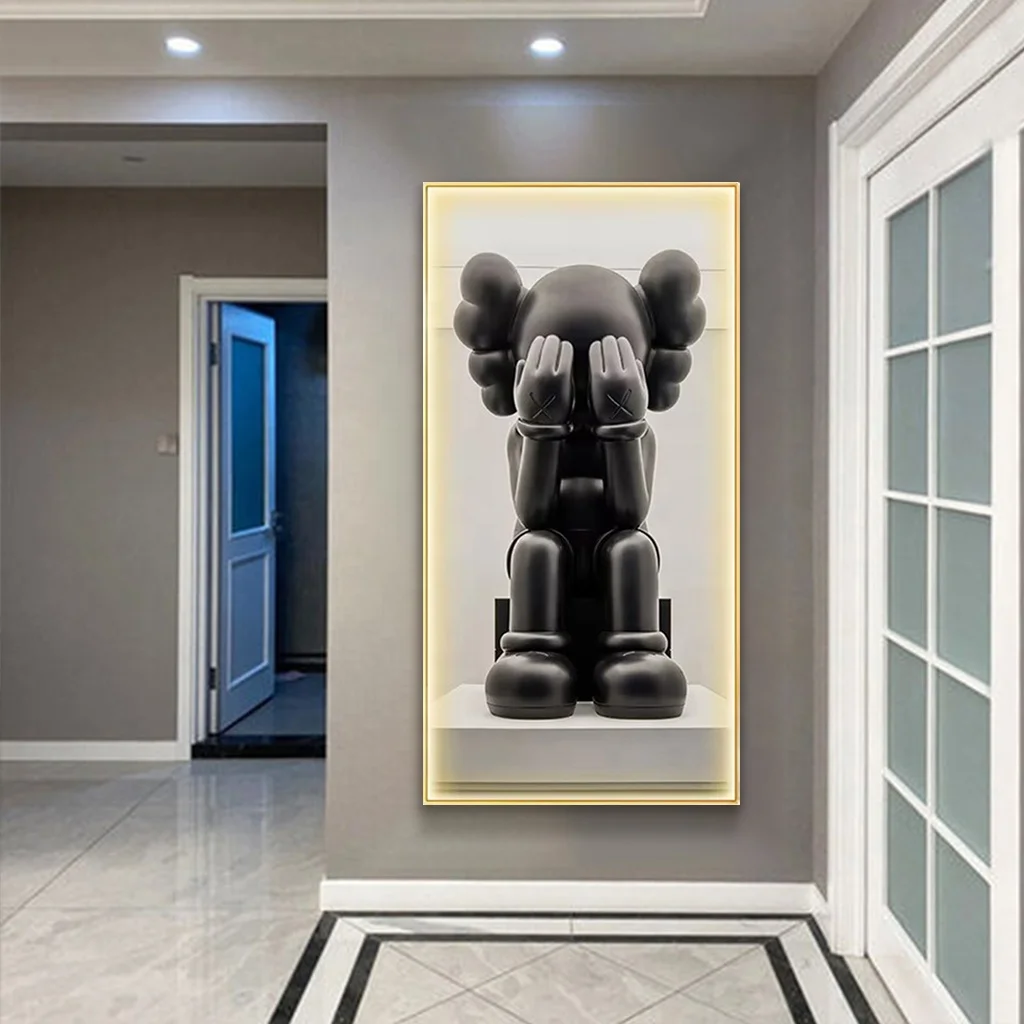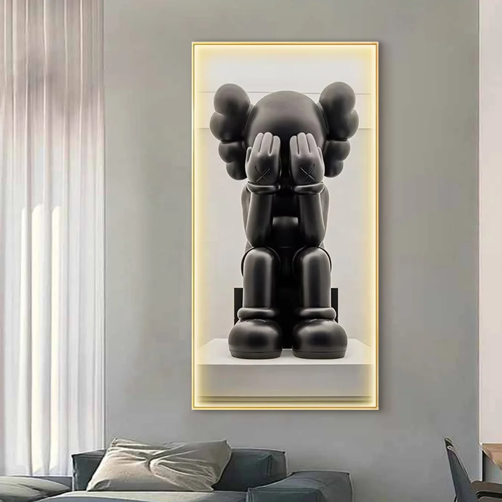 Modern Living Room Decoration LED Wall Lamp UV Printed Art Bear Poster Artwork Crystal Porcelain Painting Animal Decoration