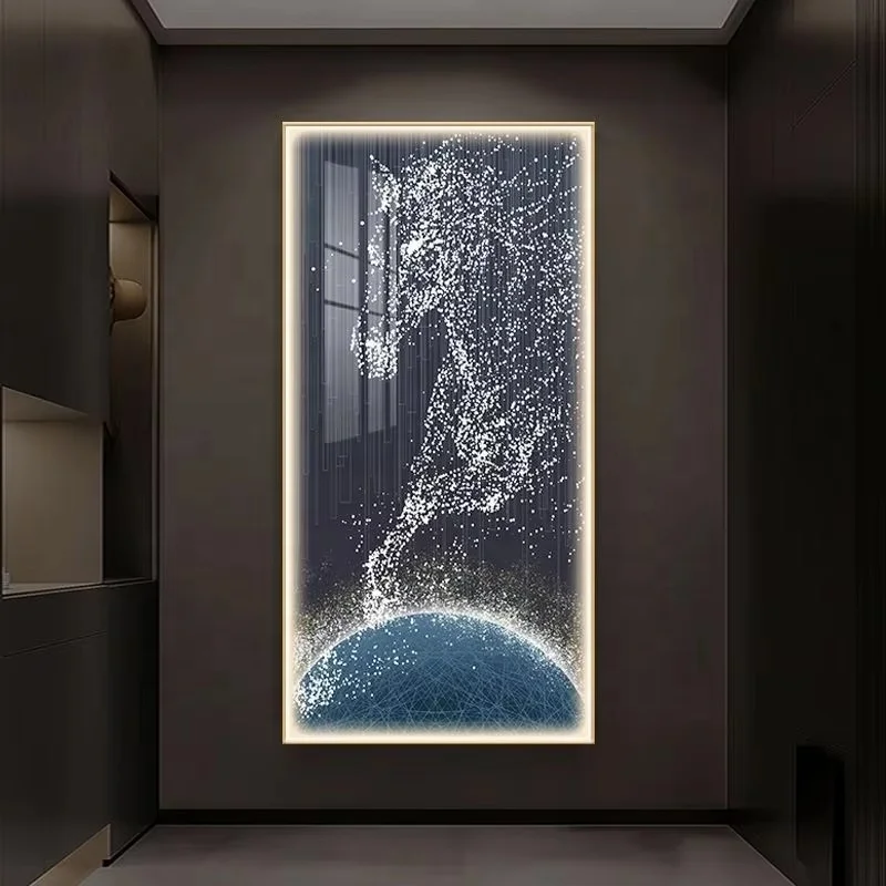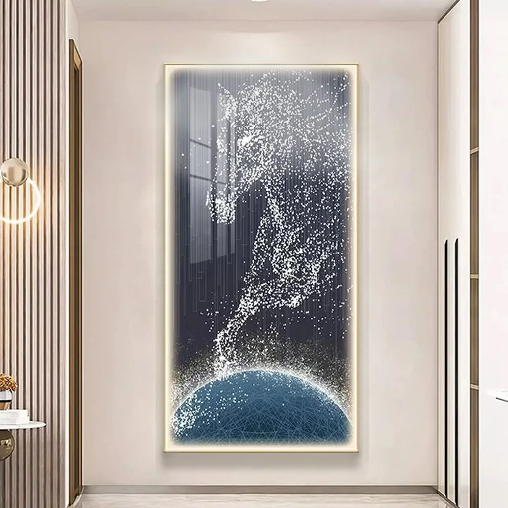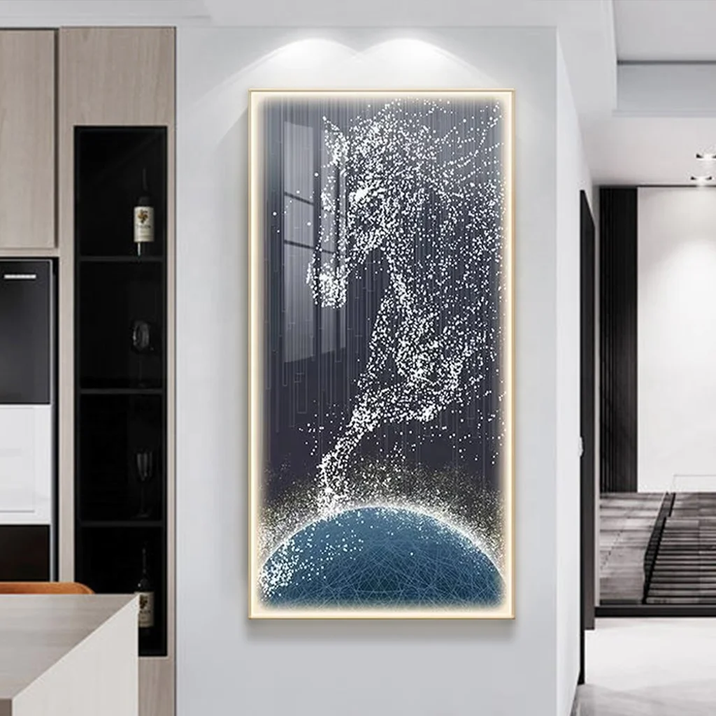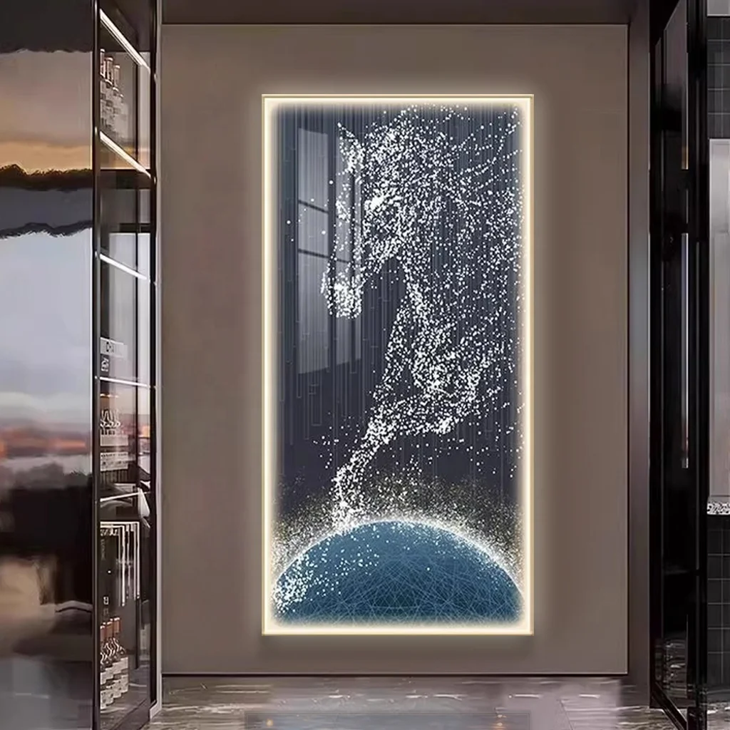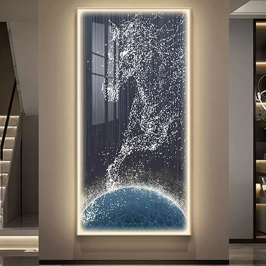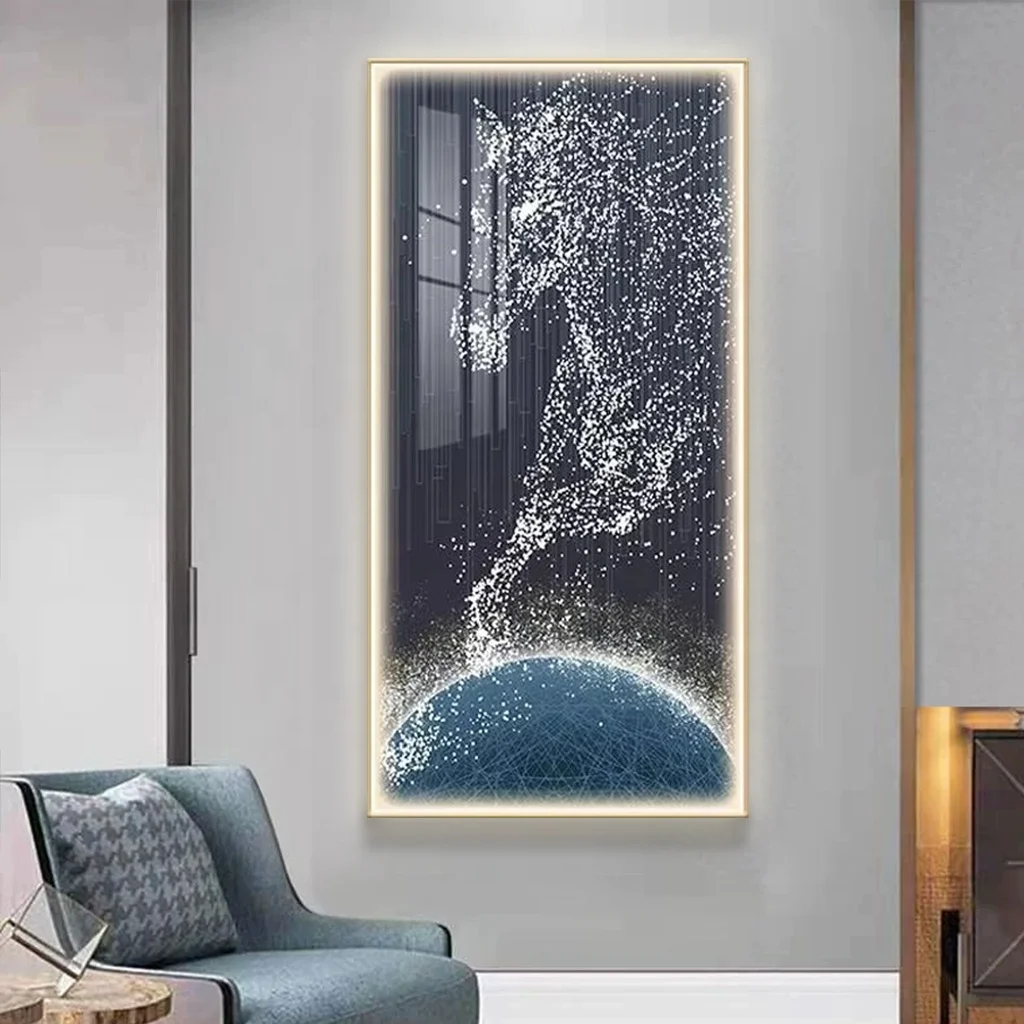 Modern Living Room Decor UV Printed Horse Image Poster Lamp Crystal Porcelain Artwork Abstract Animal LED Wall Art