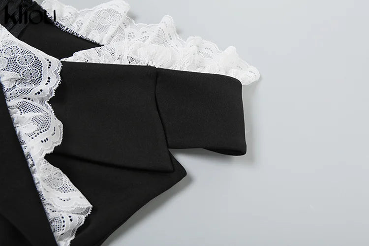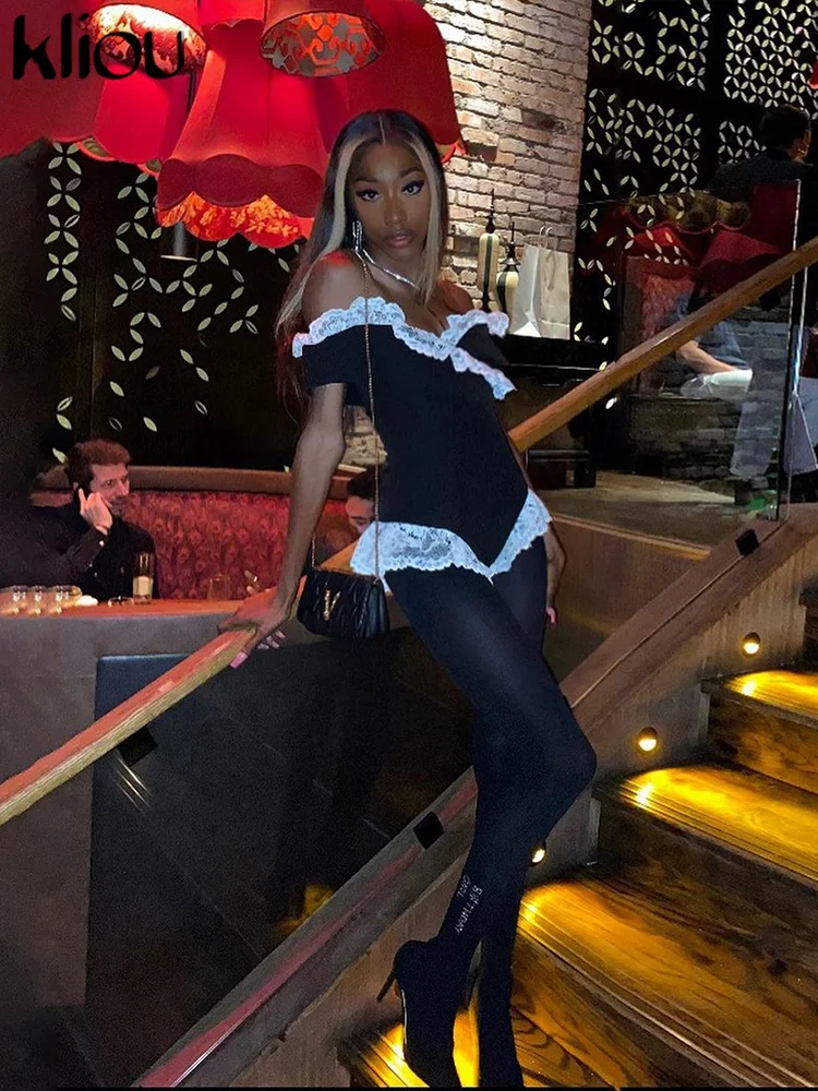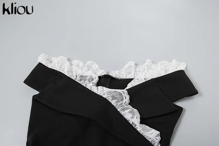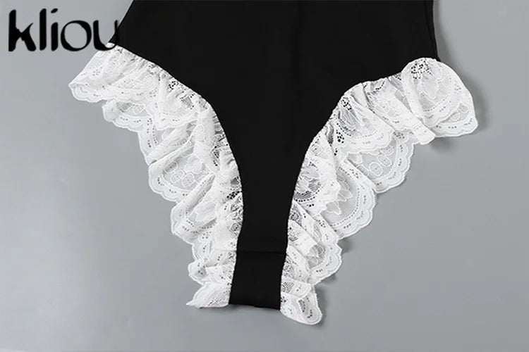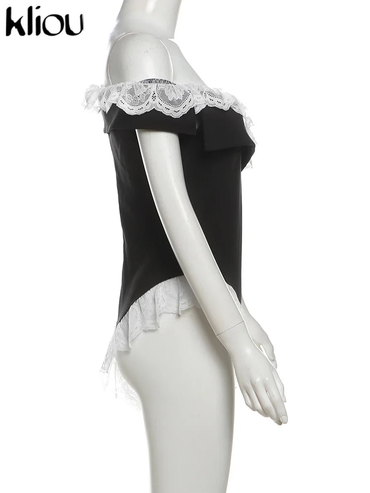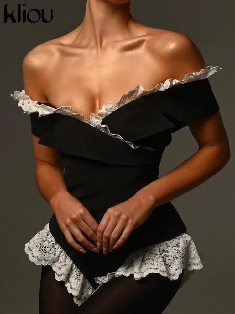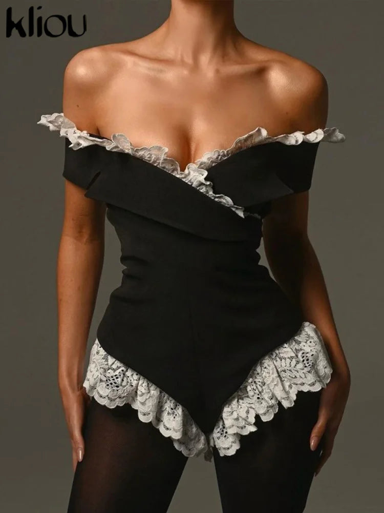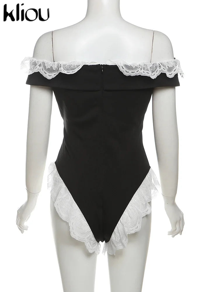 Kliou Women's Bodysuit Mesh Lace Off-the-Shoulder Fashion