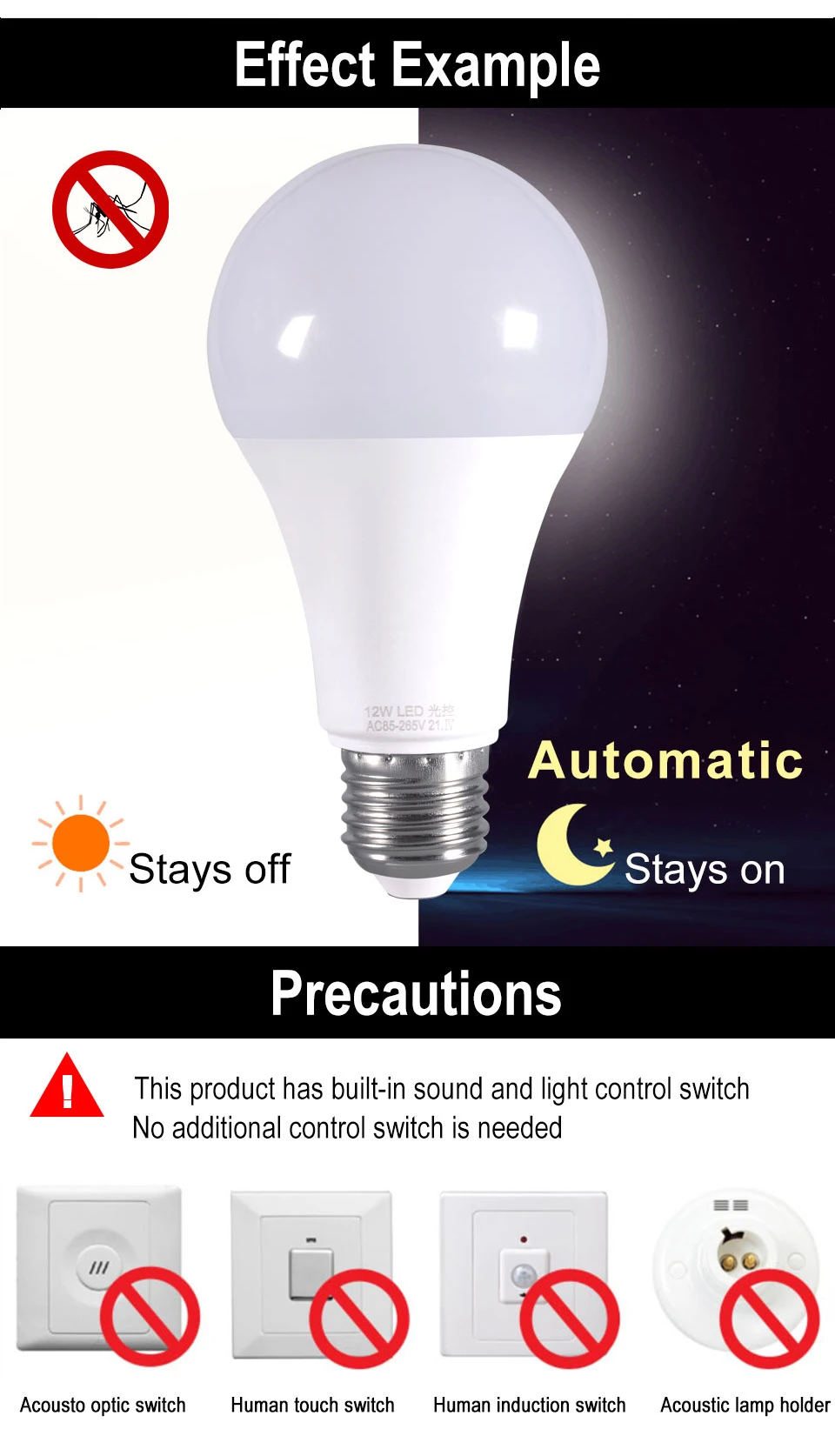 Built-in sensors that turn on the dusk to dawn light bulb automatically at dusk and turn it off when it's dawn.