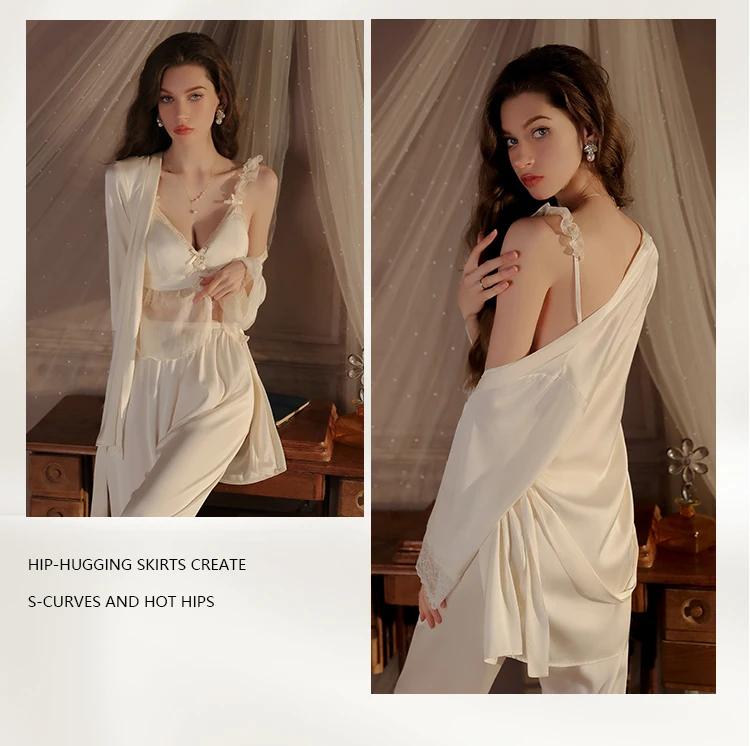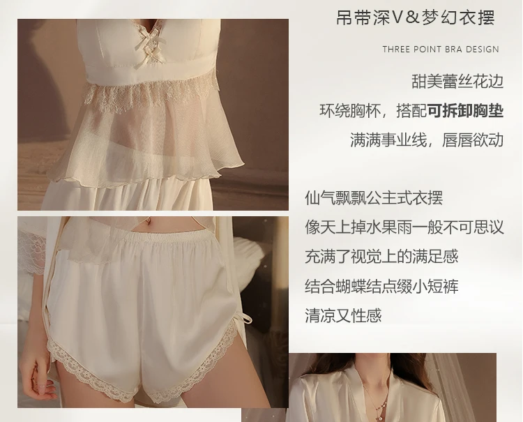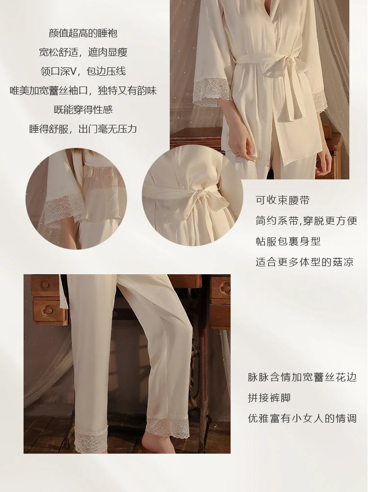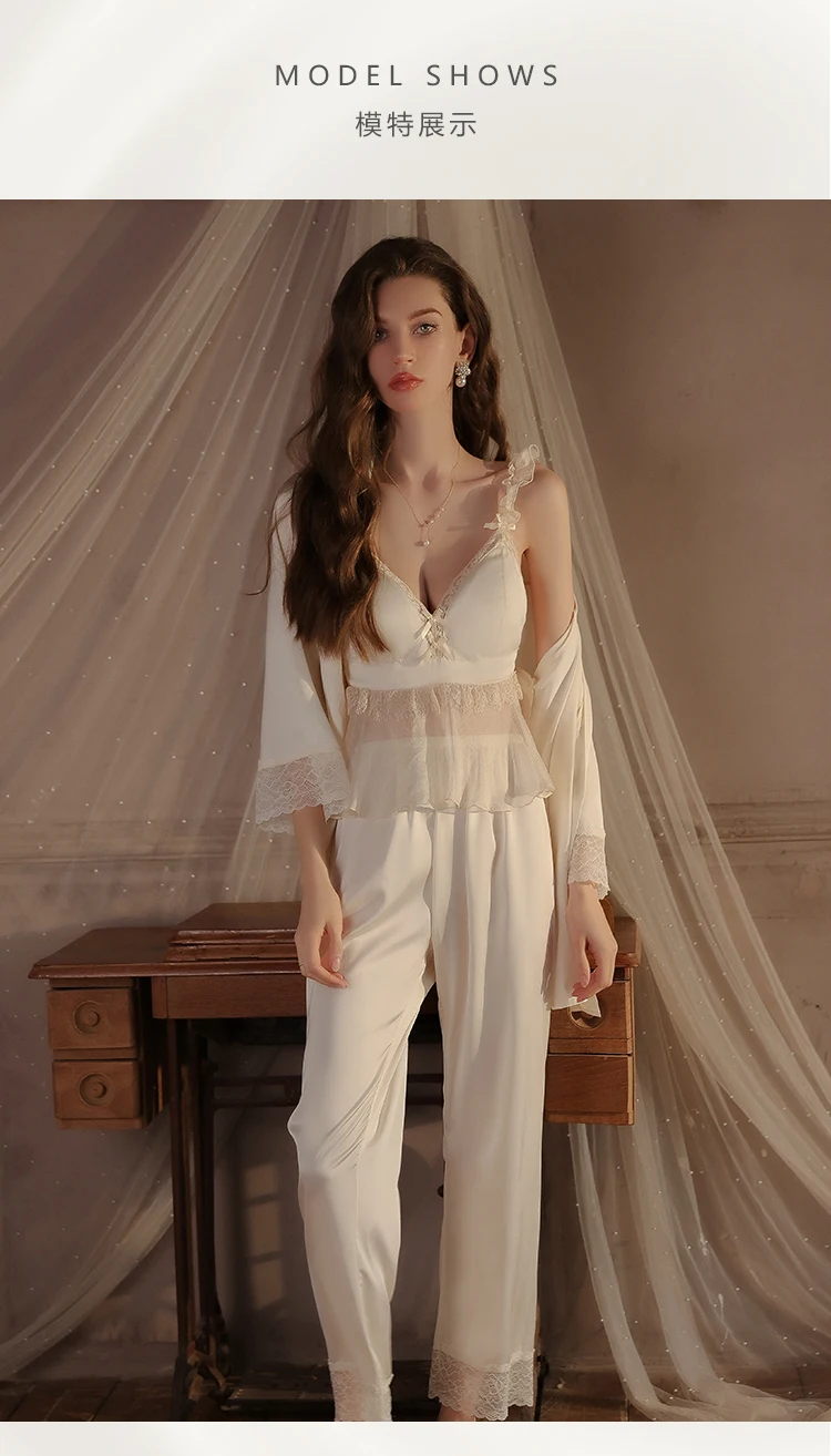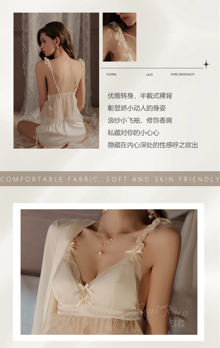 ### Luxurious Long Set of Lace Padded Mesh Home Wear