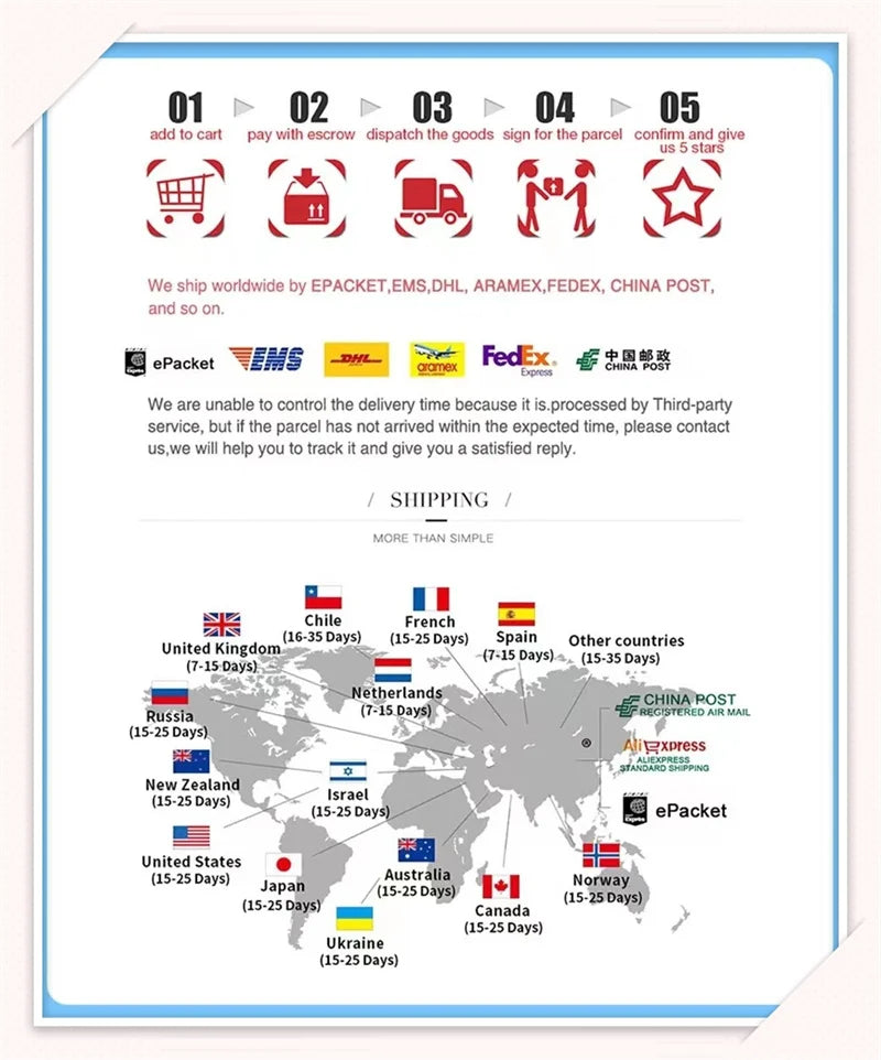 3.Please make sure you write CORRECT shipping address, zip code, and contact phone number. If you want to make any change of your orderplease contact us before we ship it
