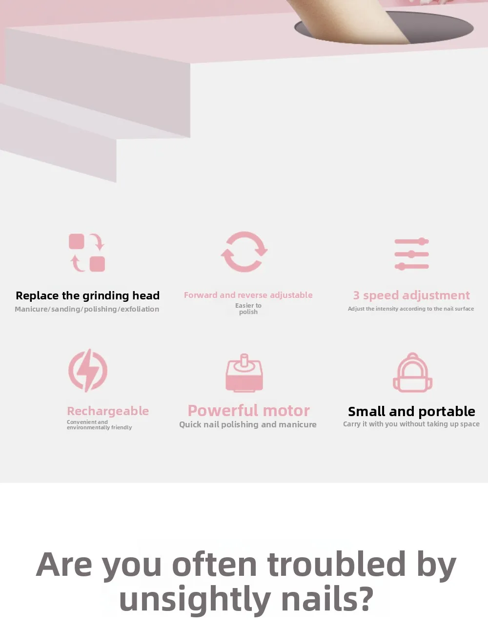 Professional Electric Nail Polisher Exfoliator Three Speed Adjustable High Speed Plastic Cross Border Wholesale USA