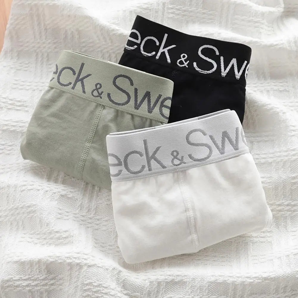 Men Triangle Underwear Briefs Solid Color Letter Print Shorts Breathable Loose Wide-Brimmed Teen Underpants for Daily Wear And Sleep