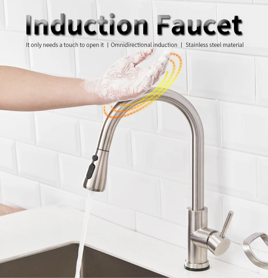 Modern Contemporary Ceramic Smart Kitchen Kitchen Faucet Touch Sensor Instant Hot Water Tap Kitchen Brass Drop Ship Brushed FLG