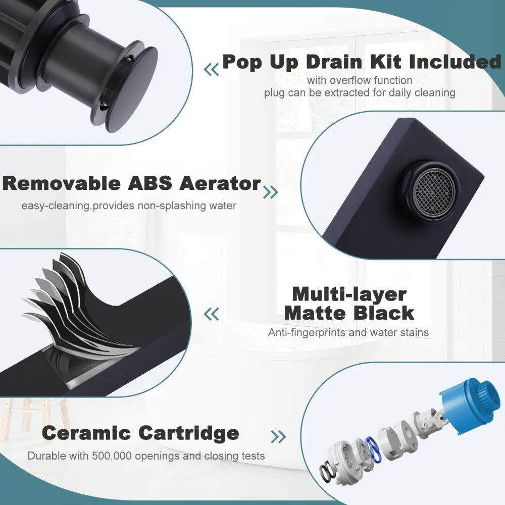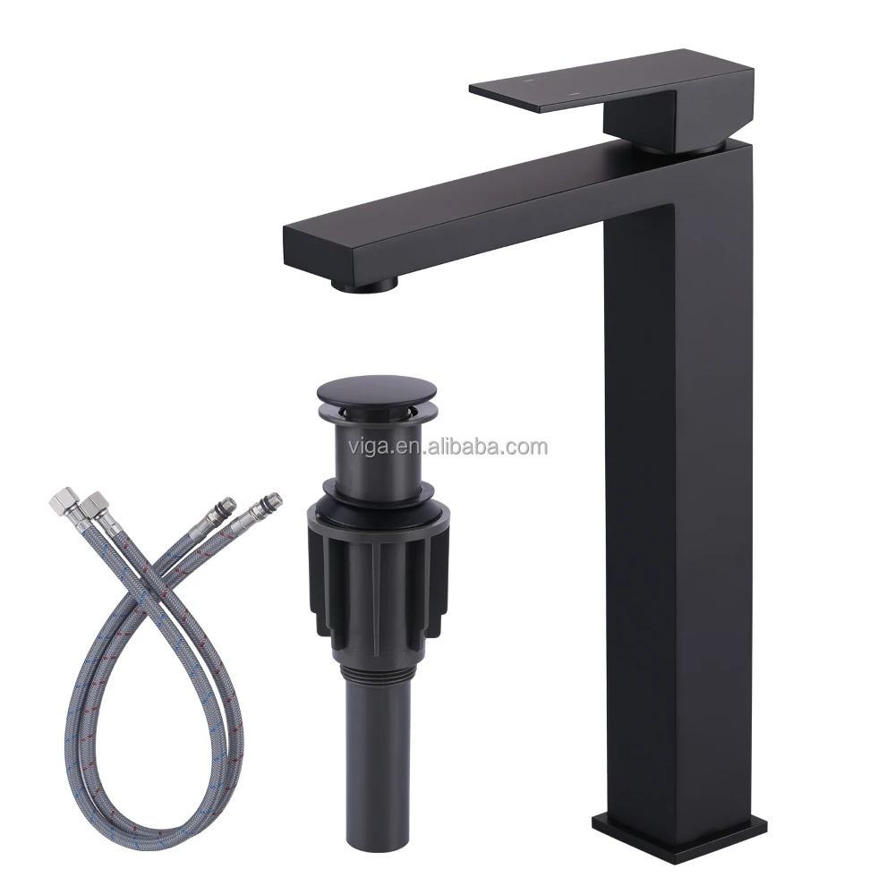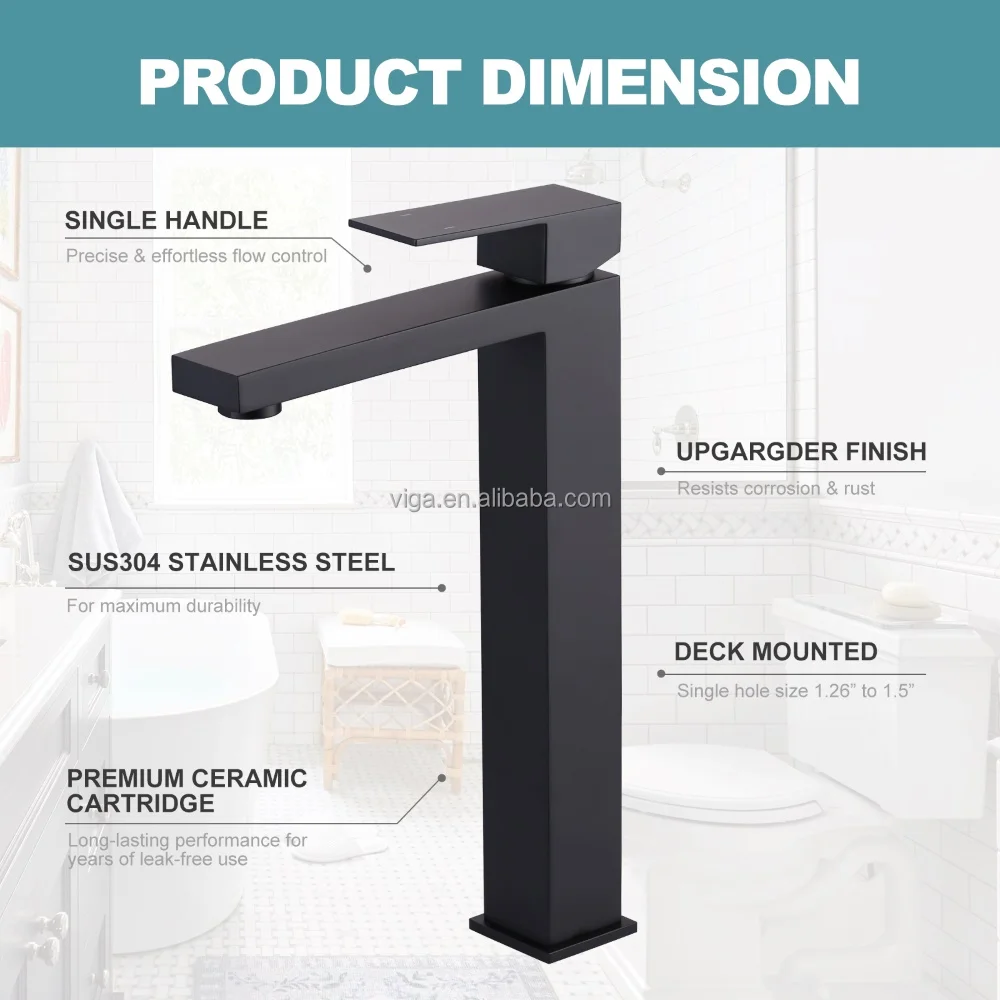 Modern Square 304 Stainless Steel Tall Bathroom Basin Faucet High Quality Ceramic Valve Core Single Hole Mounted Faucet