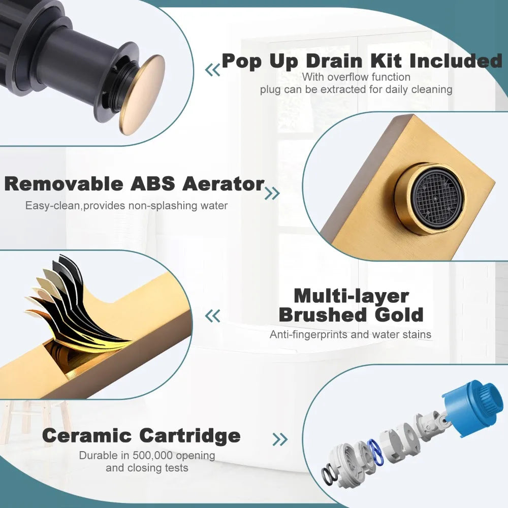 Modern Square Matte Gold Stainless Steel High-end Faucet