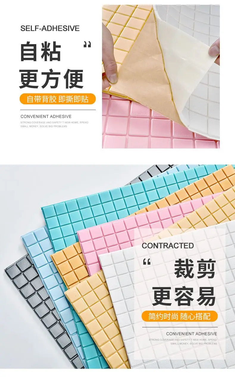 Mosaic Anti-collision Wall Sticker TV Background Decor Wallpaper Self-adhesive Living Room 3D Foam Soft Package Paste Waterproof