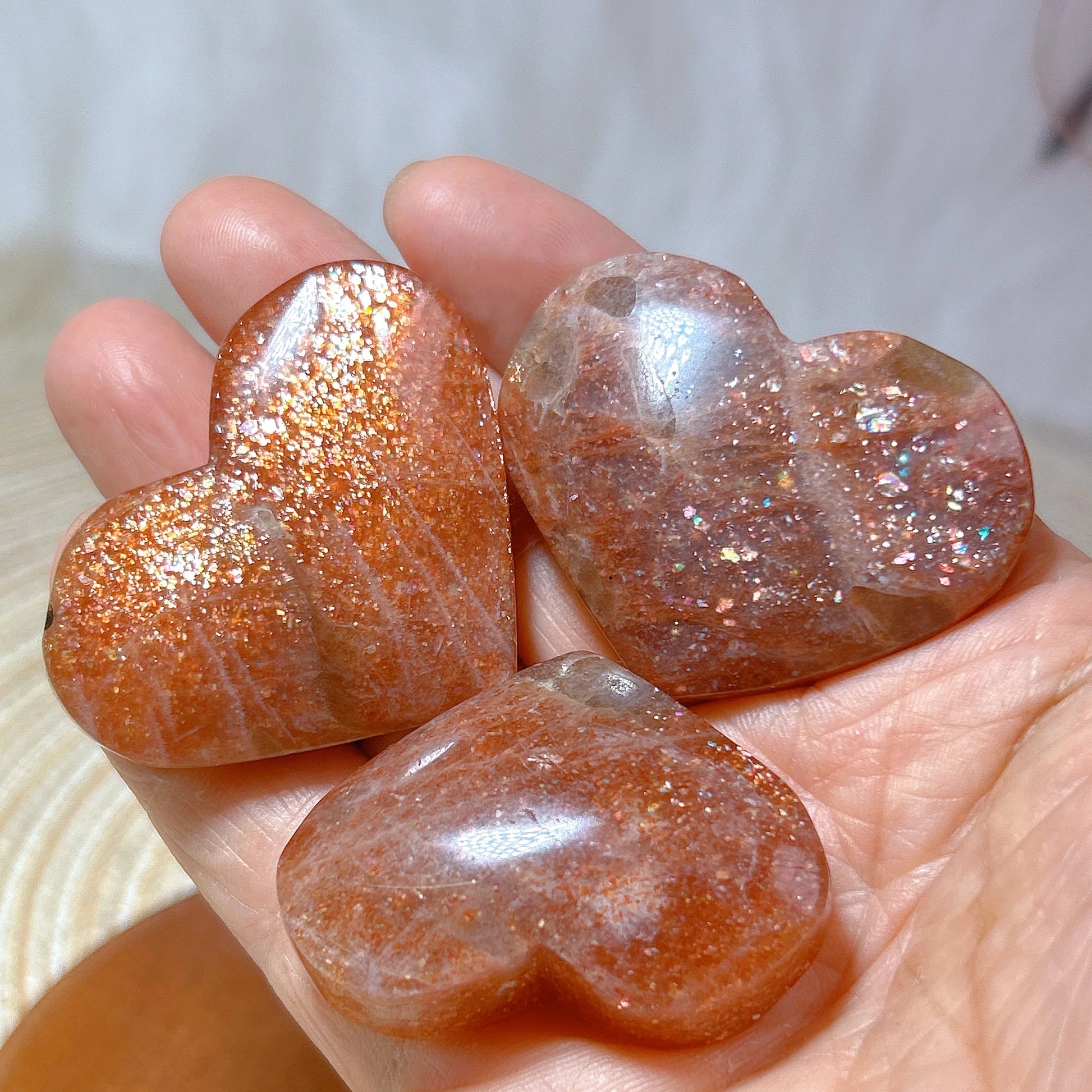 Natural Crystals Gem Sunstone Small Heart Baby Rainbow Wholesale Healing Room Decor Stone Gift Home Decorations High Quality Ore