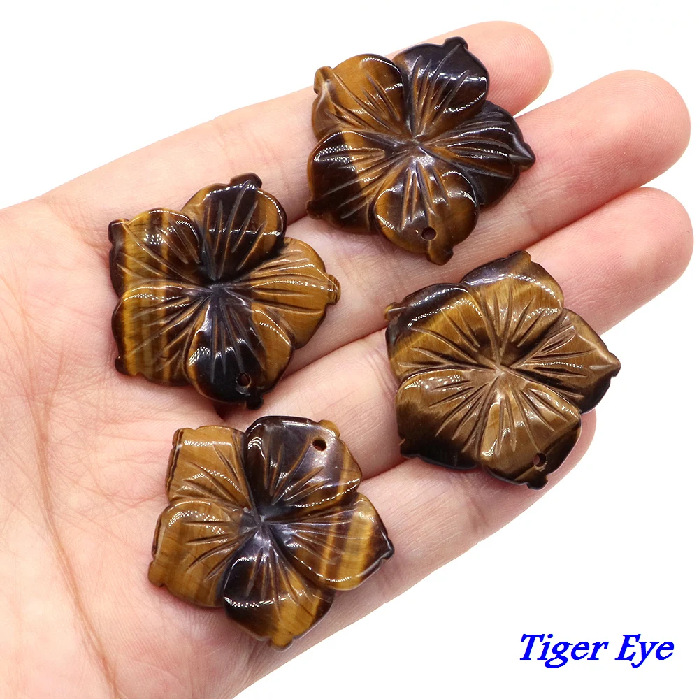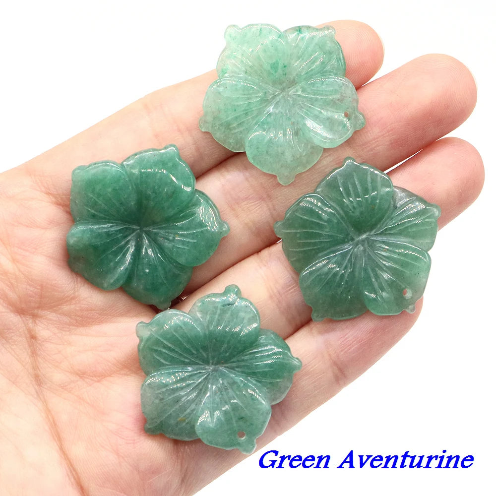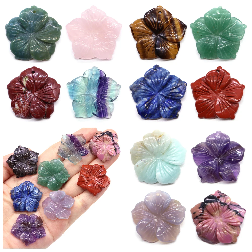 Natural Gemstone Carved Flower Shape Pendant Amethyst Fluorite Healing Crystal DIY Charm Gem Jewelry Accessory Valentine Gift