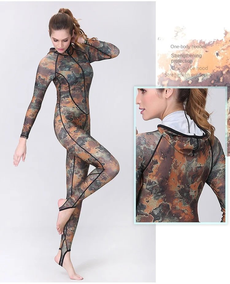 Đồ bơi liền ngụy trang chống nắng có mũ đệm ngực