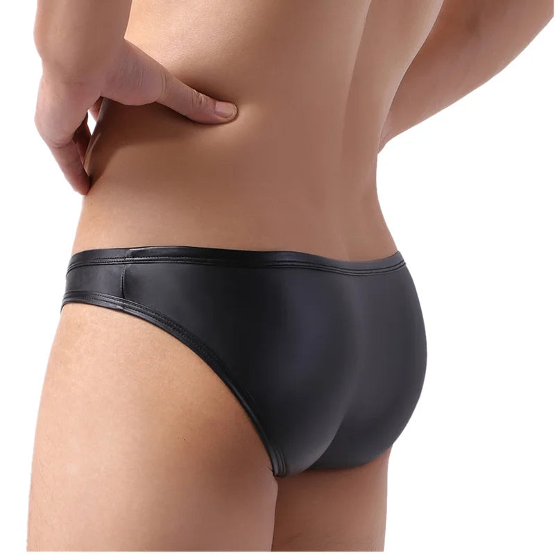 Men's Sexy Briefs Low Rise Glossy Leather Front Pockets