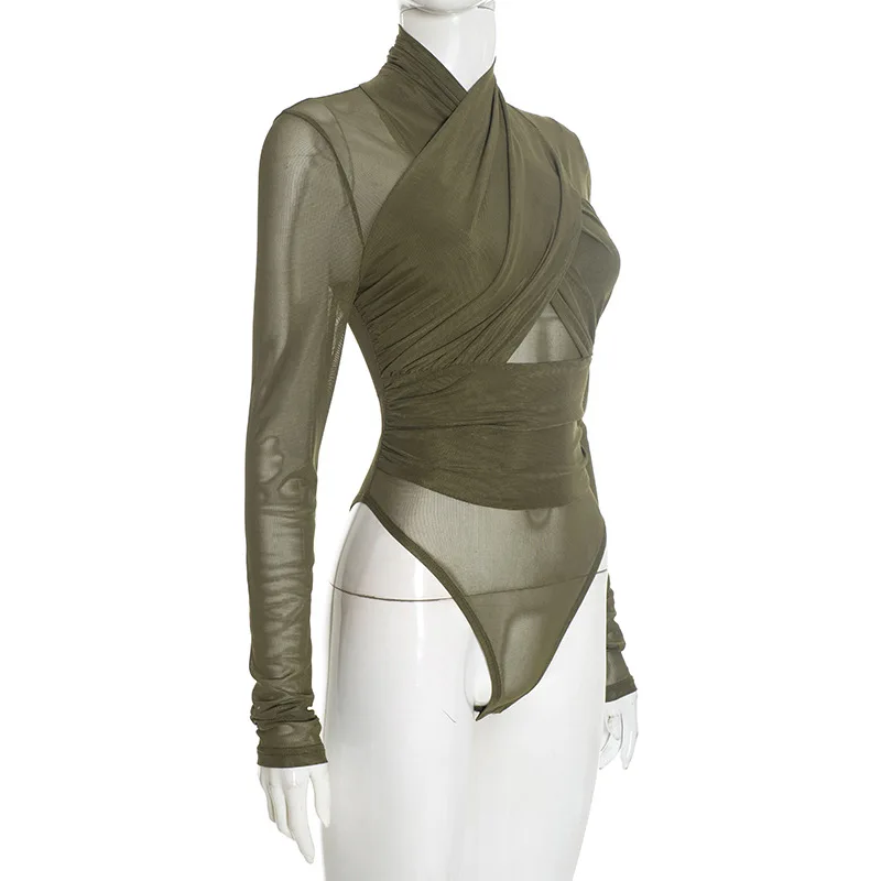 Nsauye Sexy Tights Long Sleeve High Waist Hollow Out Night Club Fashion Women Bodysuit Tops Y2K One Pieces Skinny Rompers 2025