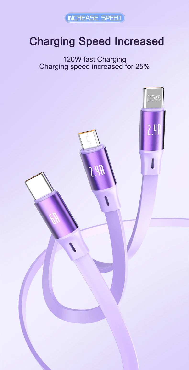 120W Multi-Function OEM Customized 3in1 Fast Charging Cable