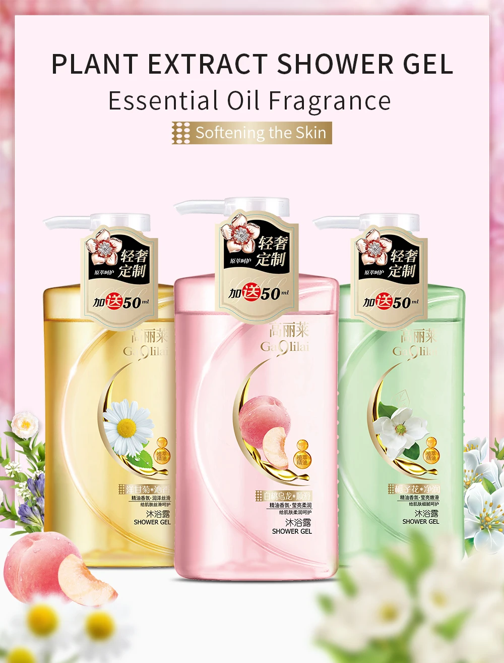 OEM Fresh Moisturizing Peach Shower Gel, Wholesale Toiletries Transparent Packaging, Peach Oolong Tea Shower Gel