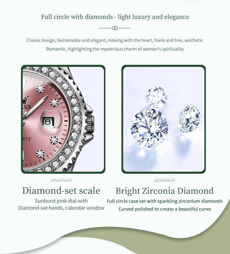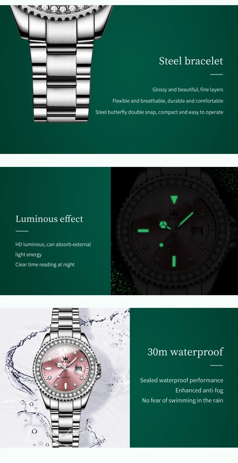 OLEVS 9945 luxury women's watch, studded with stones, date calendar