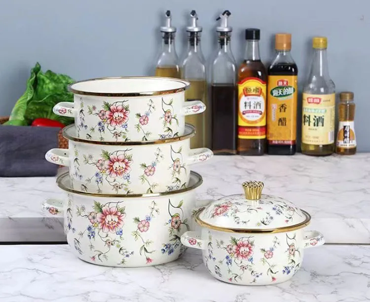 Set of 4 High-Quality Enamel Pots - For Family Kitchens