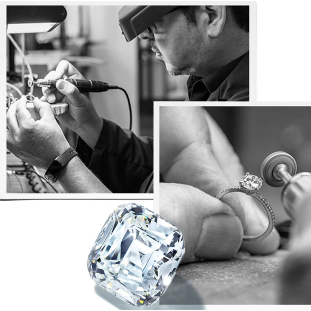 14K 585 5ct emerald cut moissanite exclusive ring engraved name