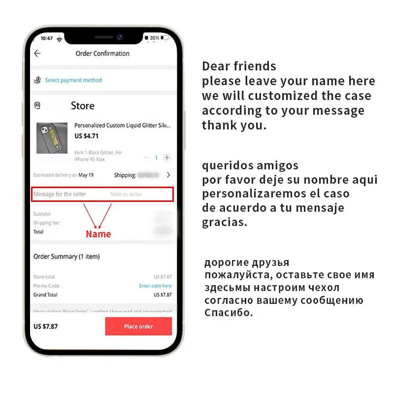 Pls note that if you do not give us your custom name within 48-72 hours, we will make your order name in the case.