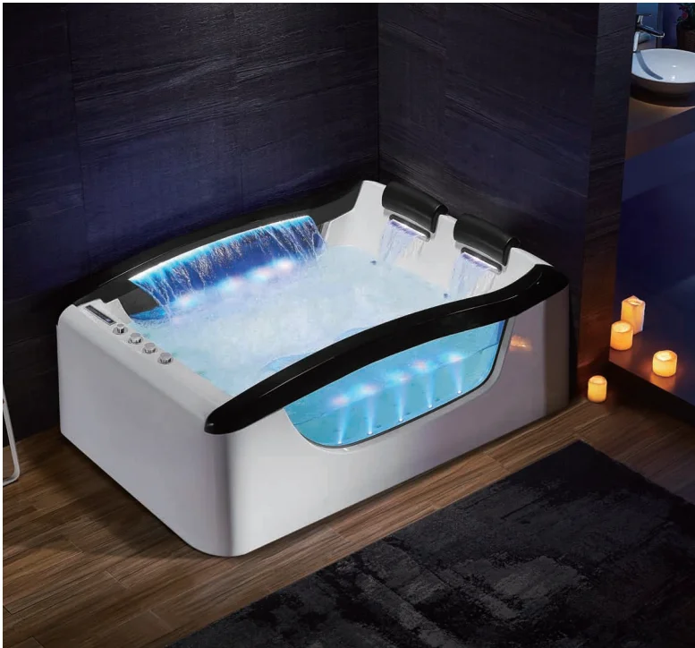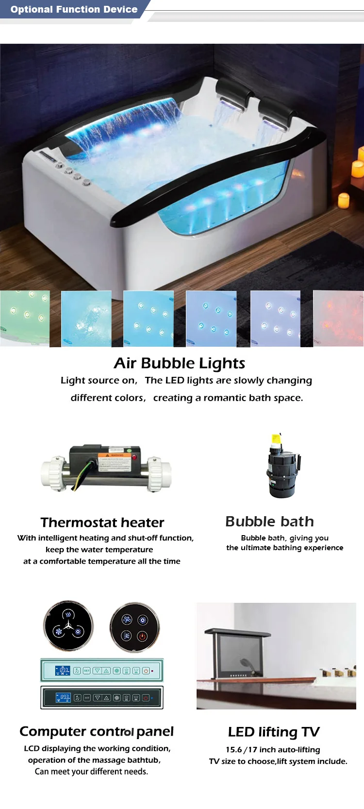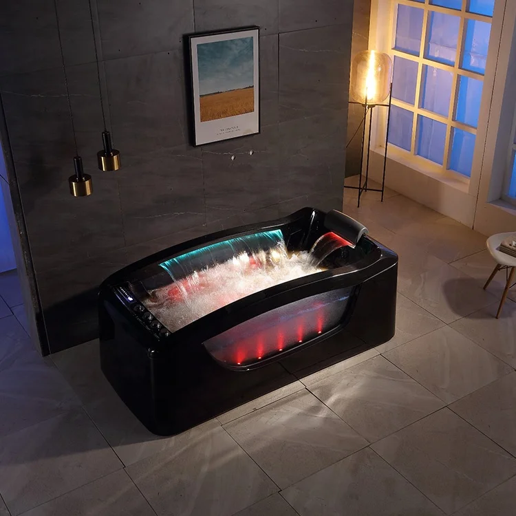 Modern Bathroom 2 Person Black Acrylic Bathtub & Massage Therapy Jacuzzi Glass Jetted Tub