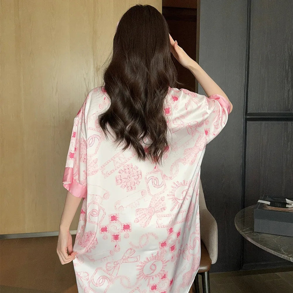New 2024 Women's Big Size Loose-fitting Cool Silk Nightgown