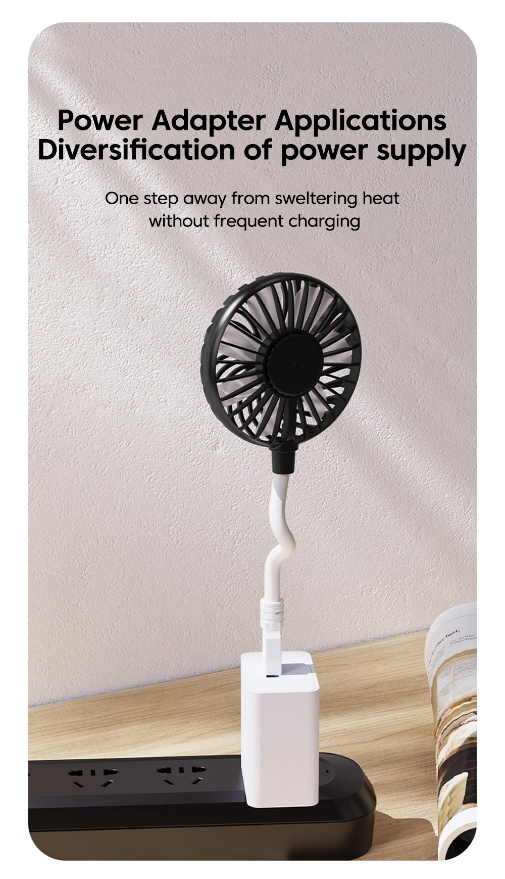 Plug and play: Multiple power supply methods are available, and interfaces such as portable power banks and laptop power adapters can be used for power supply without waiting. Simply plug in the power source to cool down.