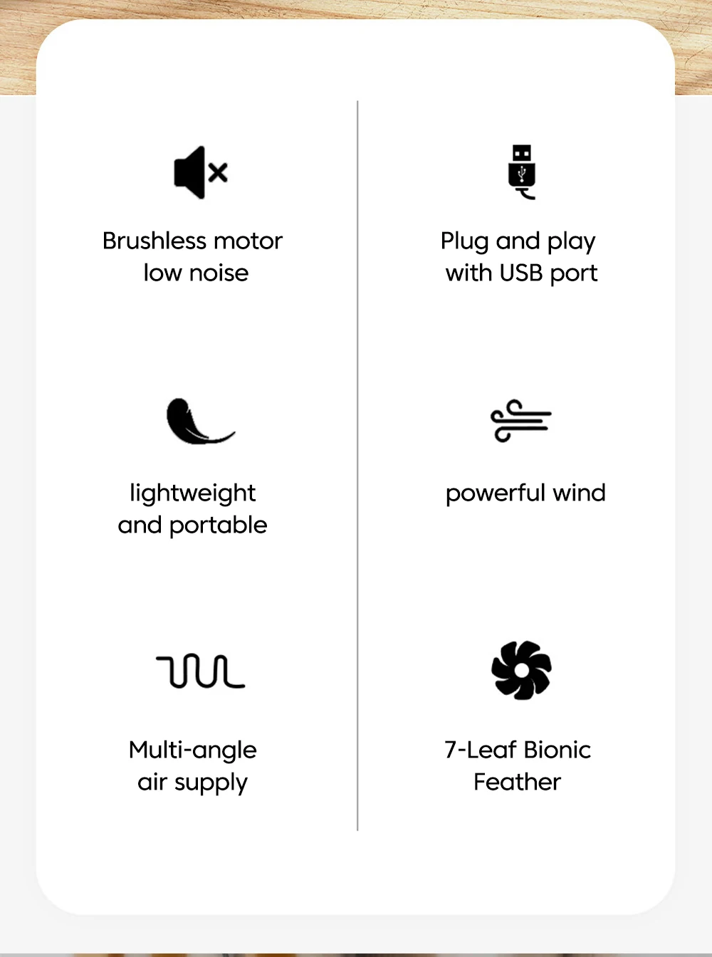 Level 1: The design of the 7-blade fan blade ensures a more uniform airflow, making the wind softer and achieving instant cooling.