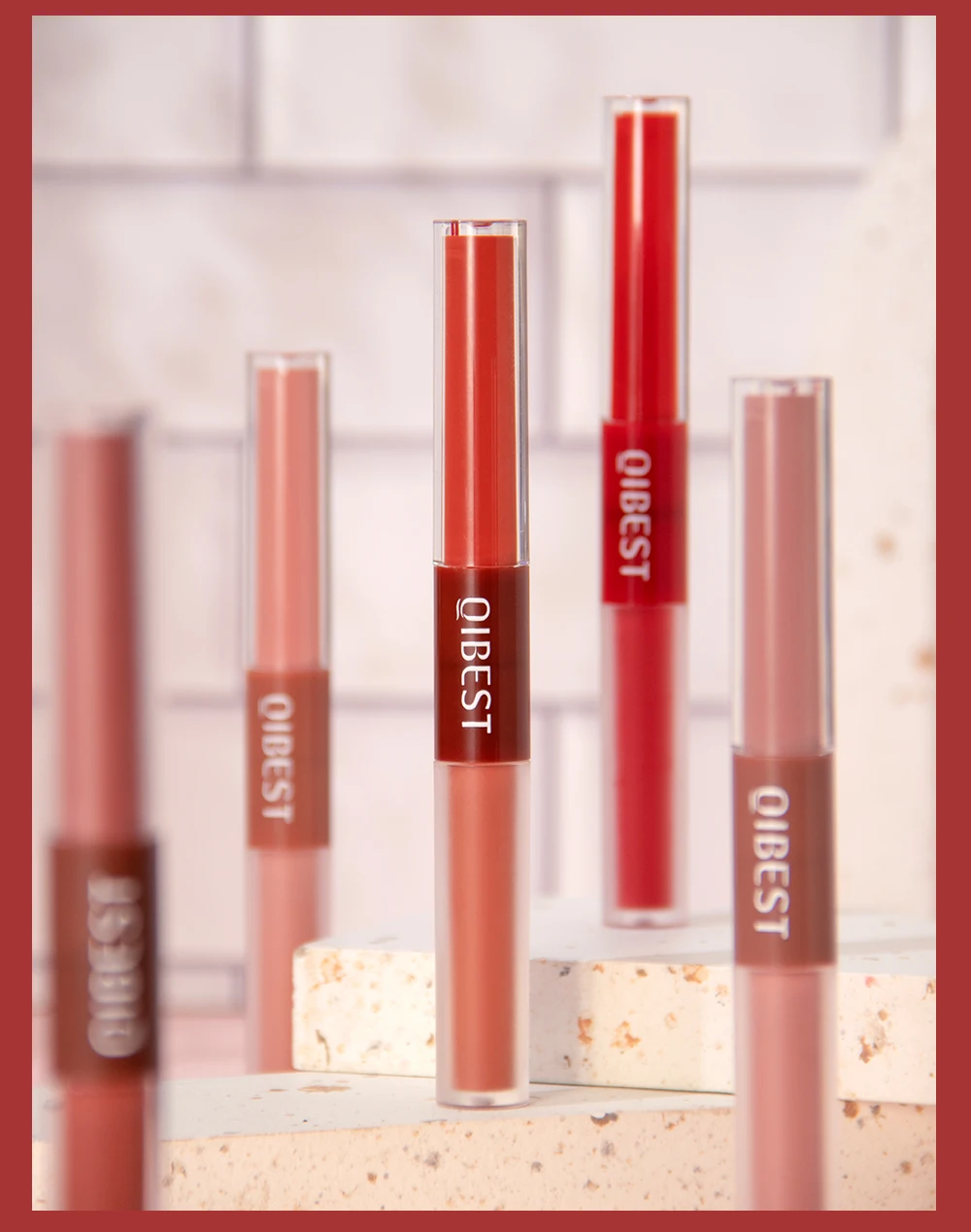 QIBEST 2 In 1 Matte Lipstick Long Lasting Waterproof