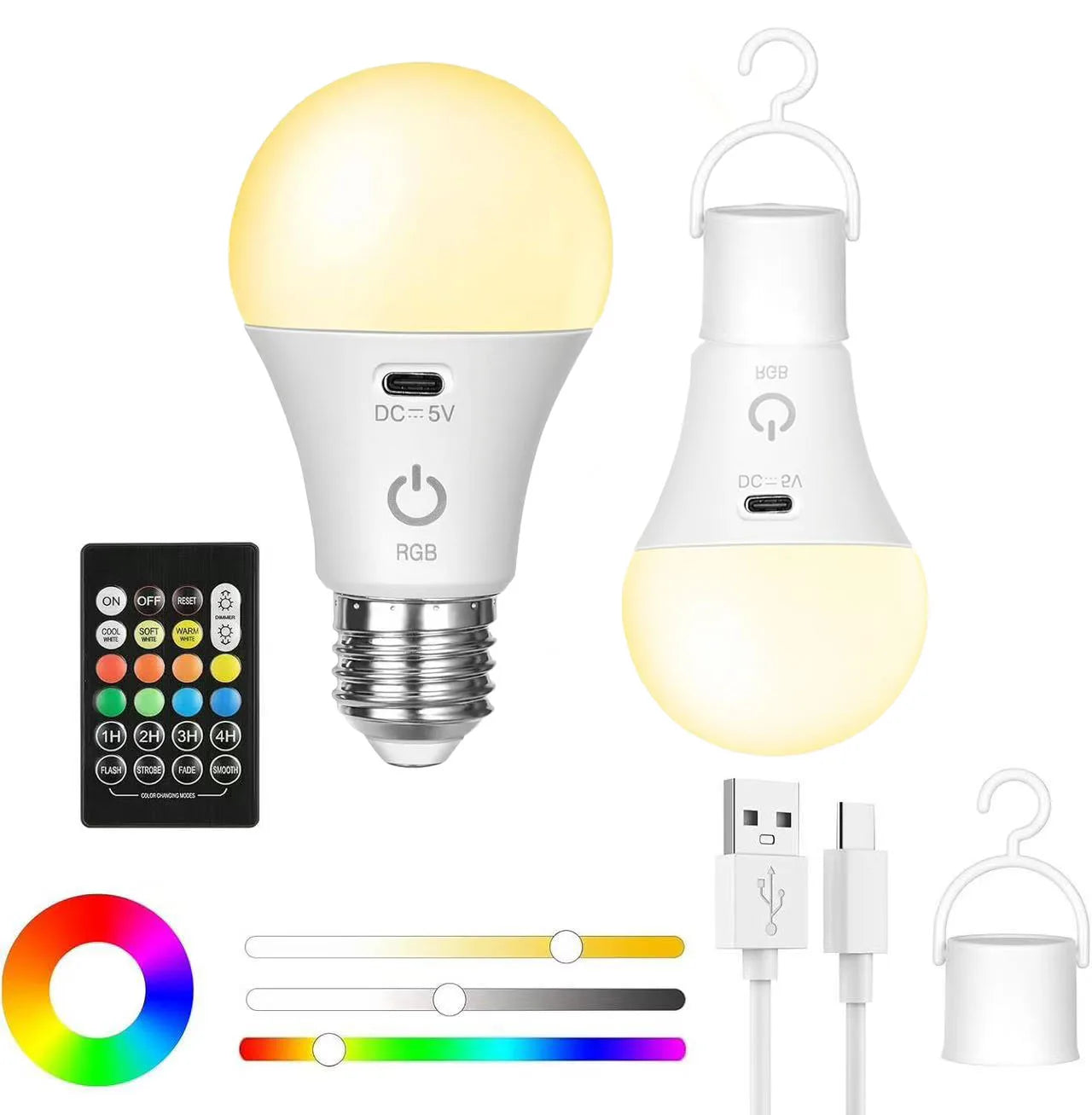 Smart Rechargeable RGB E27 Light Bulb with Remote & Backup Battery