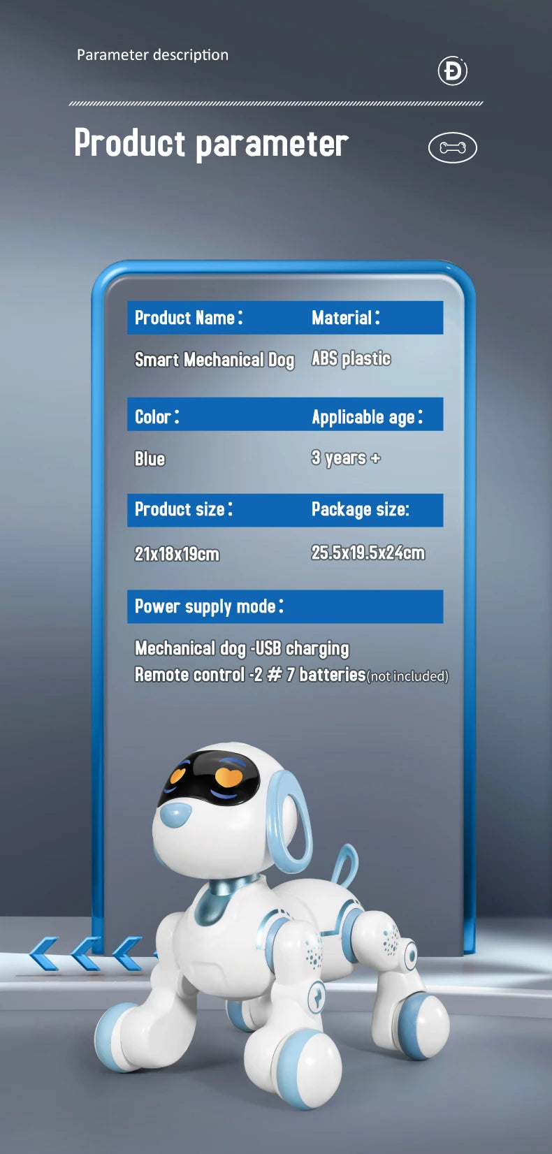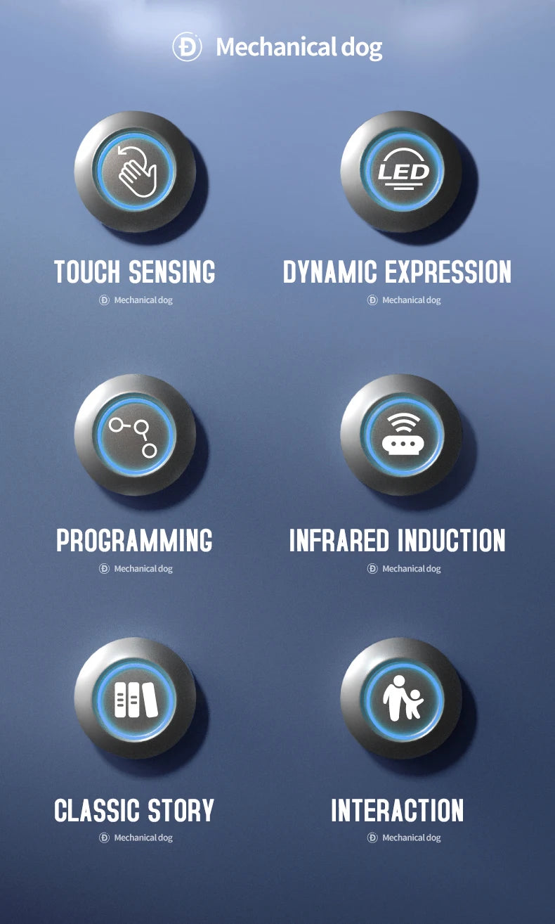 Touch interaction: The human body-sensing touch function on the dog's head. Touch the dog with love. The dog can feel your care and it will give you a corresponding love response.