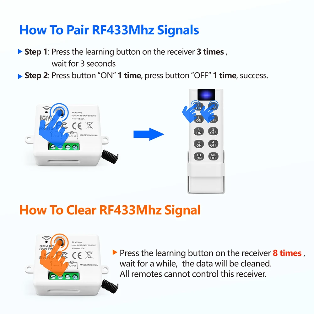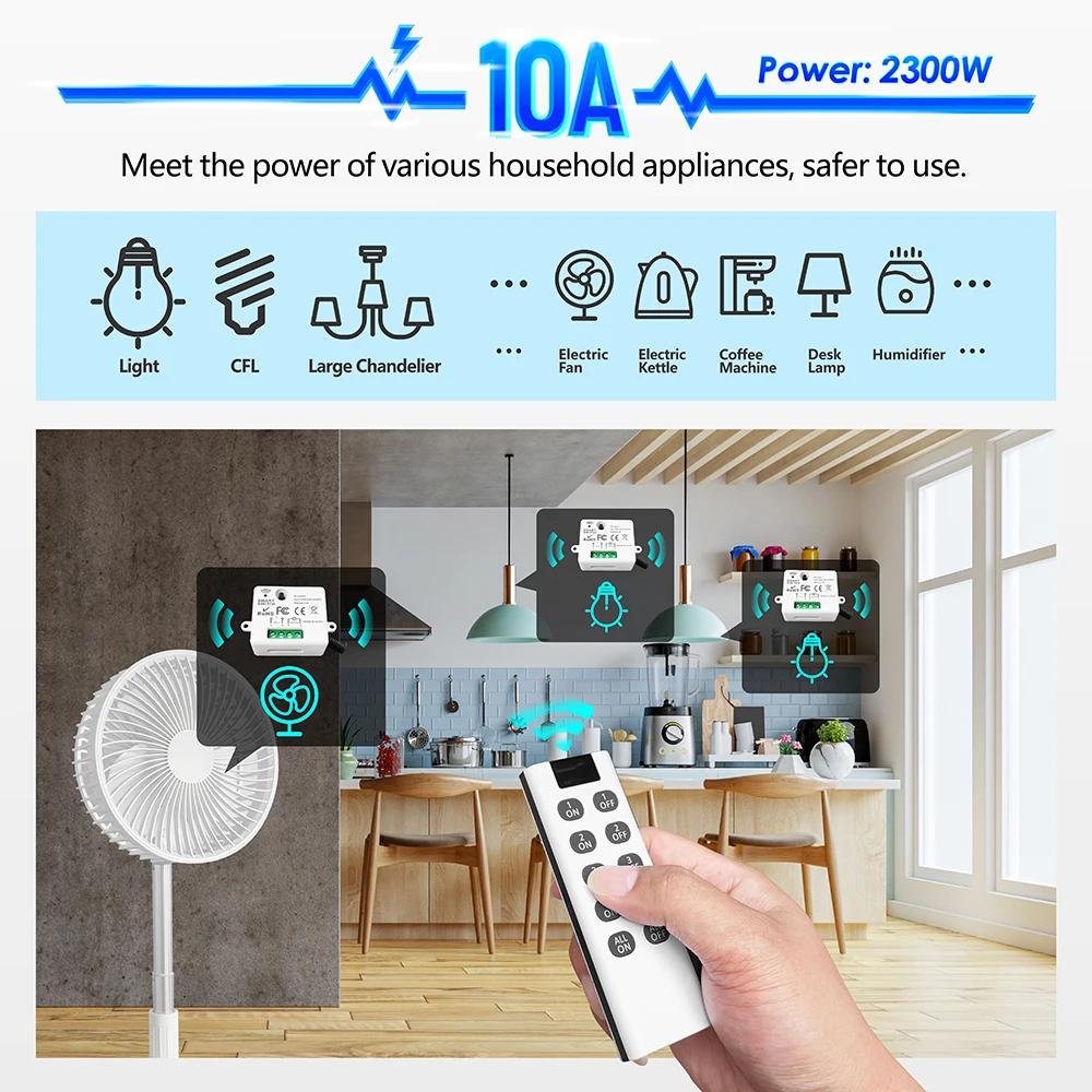 RF Wireless Smart Light Switch 433MHz 110V 220V Mini Relay Receiver Module ,4-in-1 Remote Control,For Led Light Lamp Fan ON/OFF