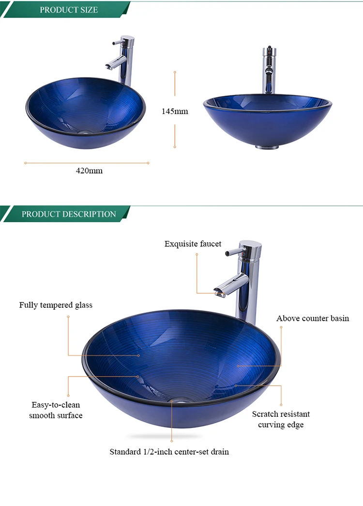 Hot Blue Minimalist Products Cheap Glass Wash Basin Cabinet Set Countertop Wash Basin Design Hand Wash Basin Design