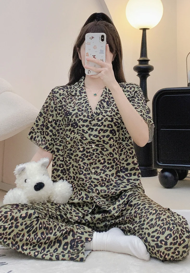 SAMWESTART Women's Pajamas Set Cool Silk High Quality Newspaper Print