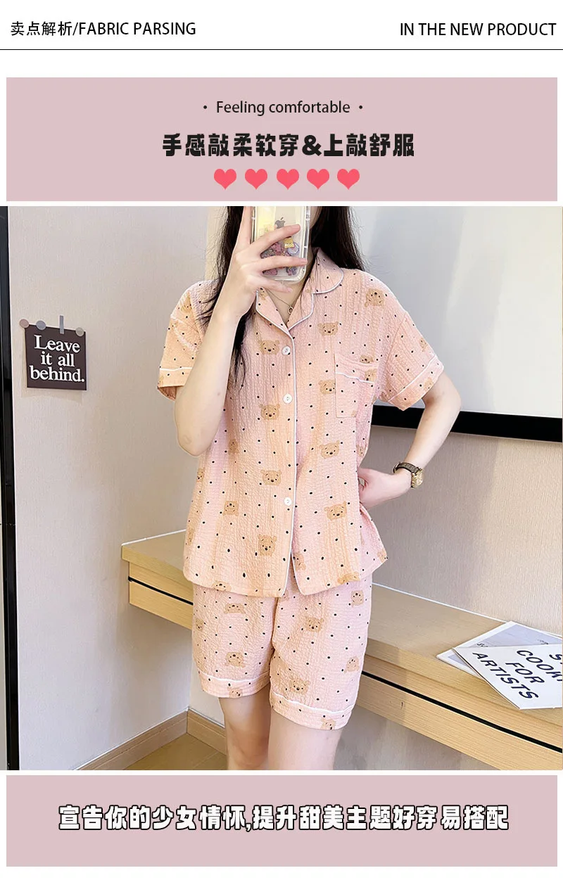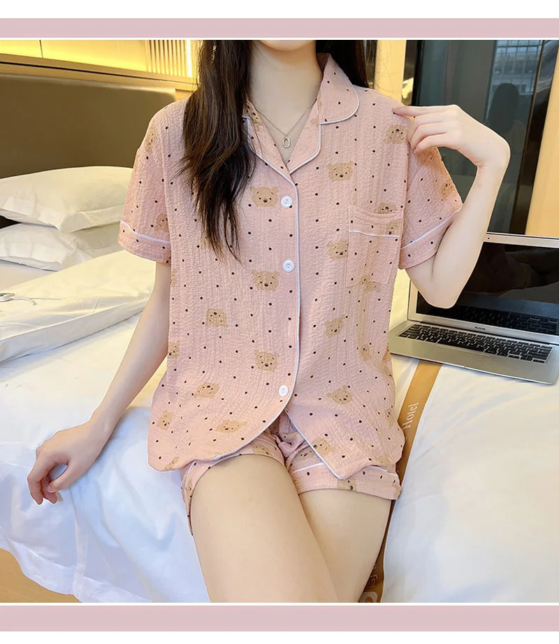 SAMWE Cute Summer Cotton Bubble Pajamas for Women