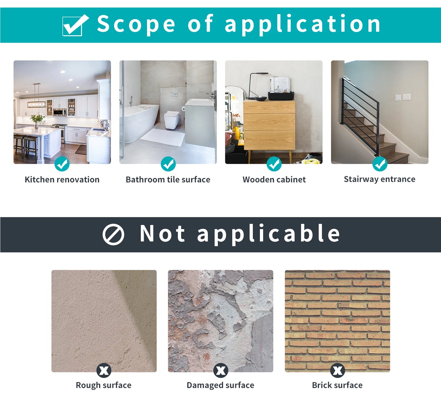 Waterproof & Heat resistant. Most people used in kitchen backsplash, steamy bathroom walls, laundry rooms, RV, fireplace, etc. Easily wipe to remove stains, protect the walls from splashes and oil.
