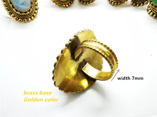 Large Oval Natural Stone Gold Plated Semi-Precious Stone Ring R230