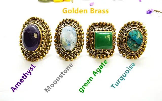 -----Golden Brass inlaid Natural Semi-gemstone Stone