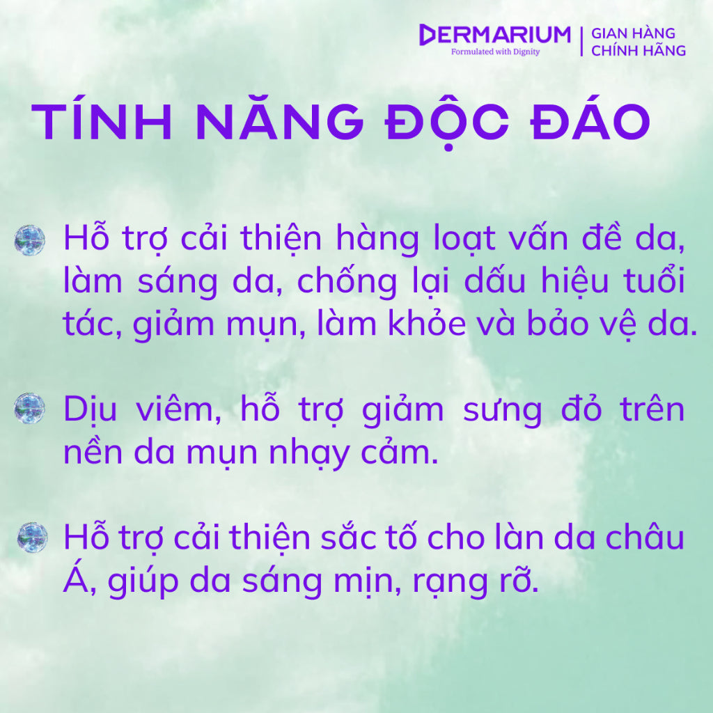 Dermarium is a Vietnamese domestic cosmetic brand, known for its skin care product lines containing active ingredients at standard concentrations, transparent ingredients, carefully researched and tested in the lab to bring optimal effectiveness while still being safe and friendly to Vietnamese skin.