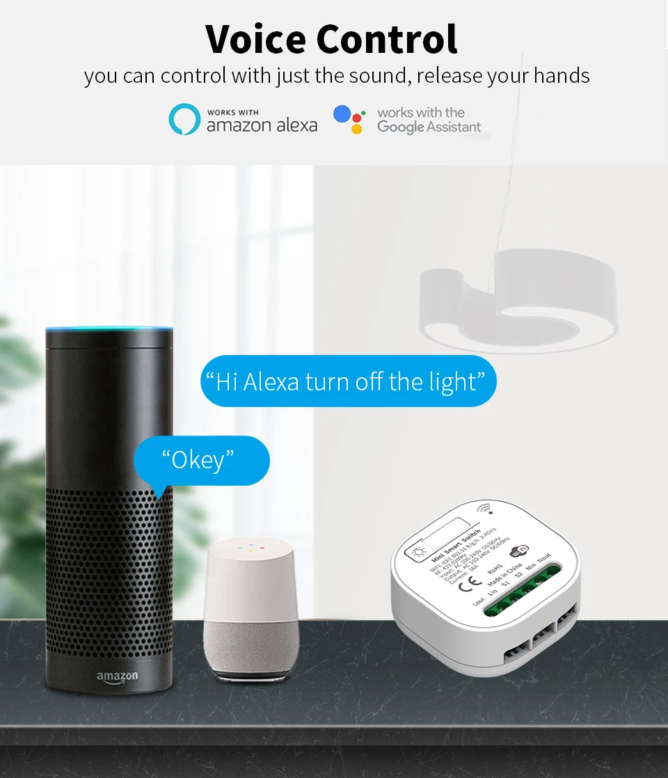 2. Support Alexa /Google Home/Xiaodu, Tmall Genie voice control, when your hands are busy, send a simple voice command to turn on/off the device, Enjoy the fun of voice