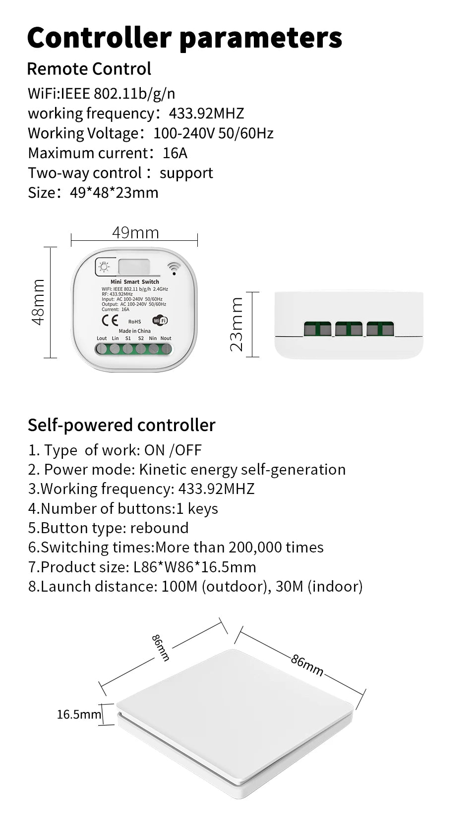 This switch receiver is only compatible with self-powered products, not compatible with other products, if you have any questions, please consult customer service before placing an order, thank you!