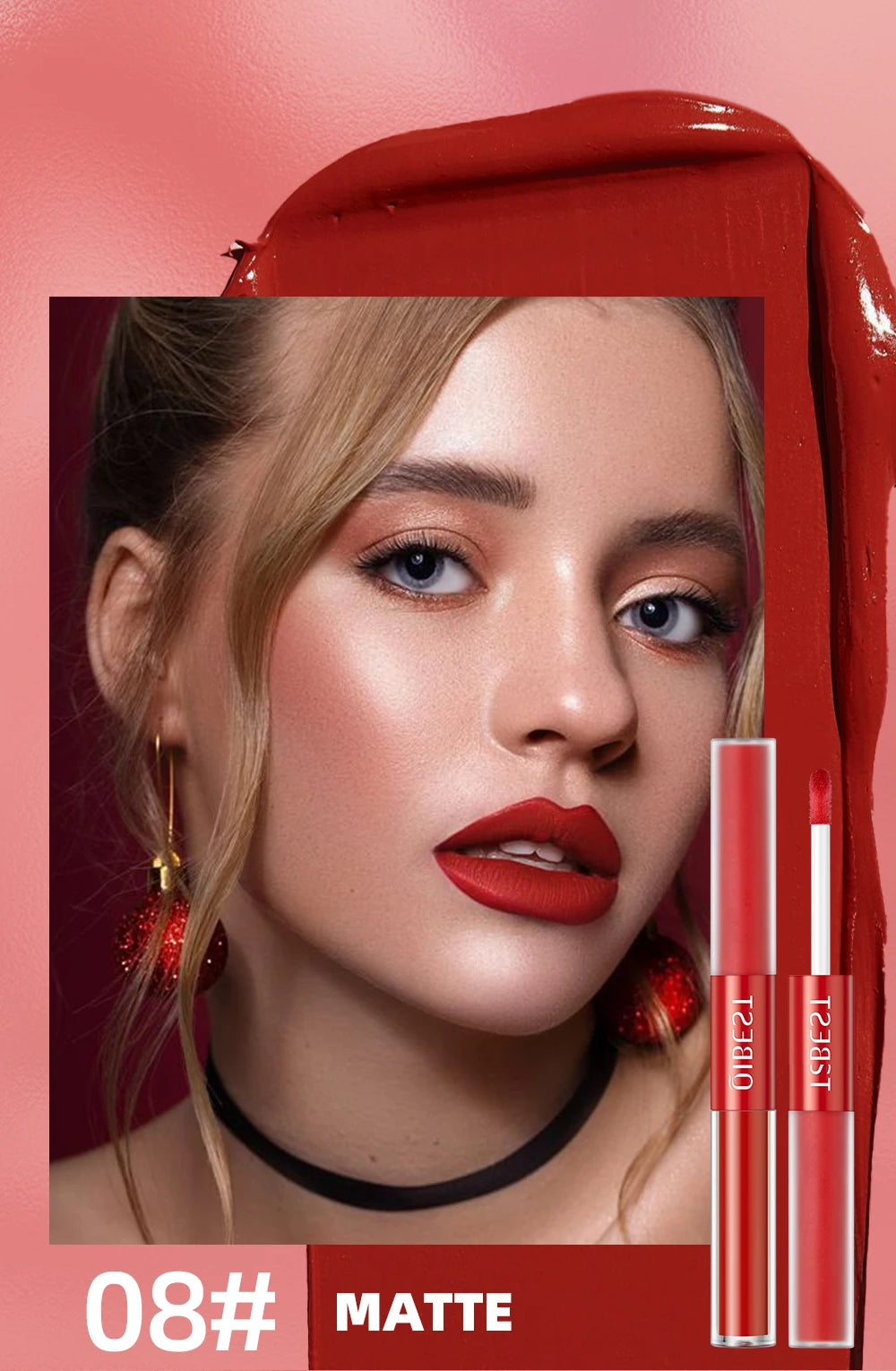 QIBEST 2 In 1 Matte Lipstick Long Lasting Waterproof