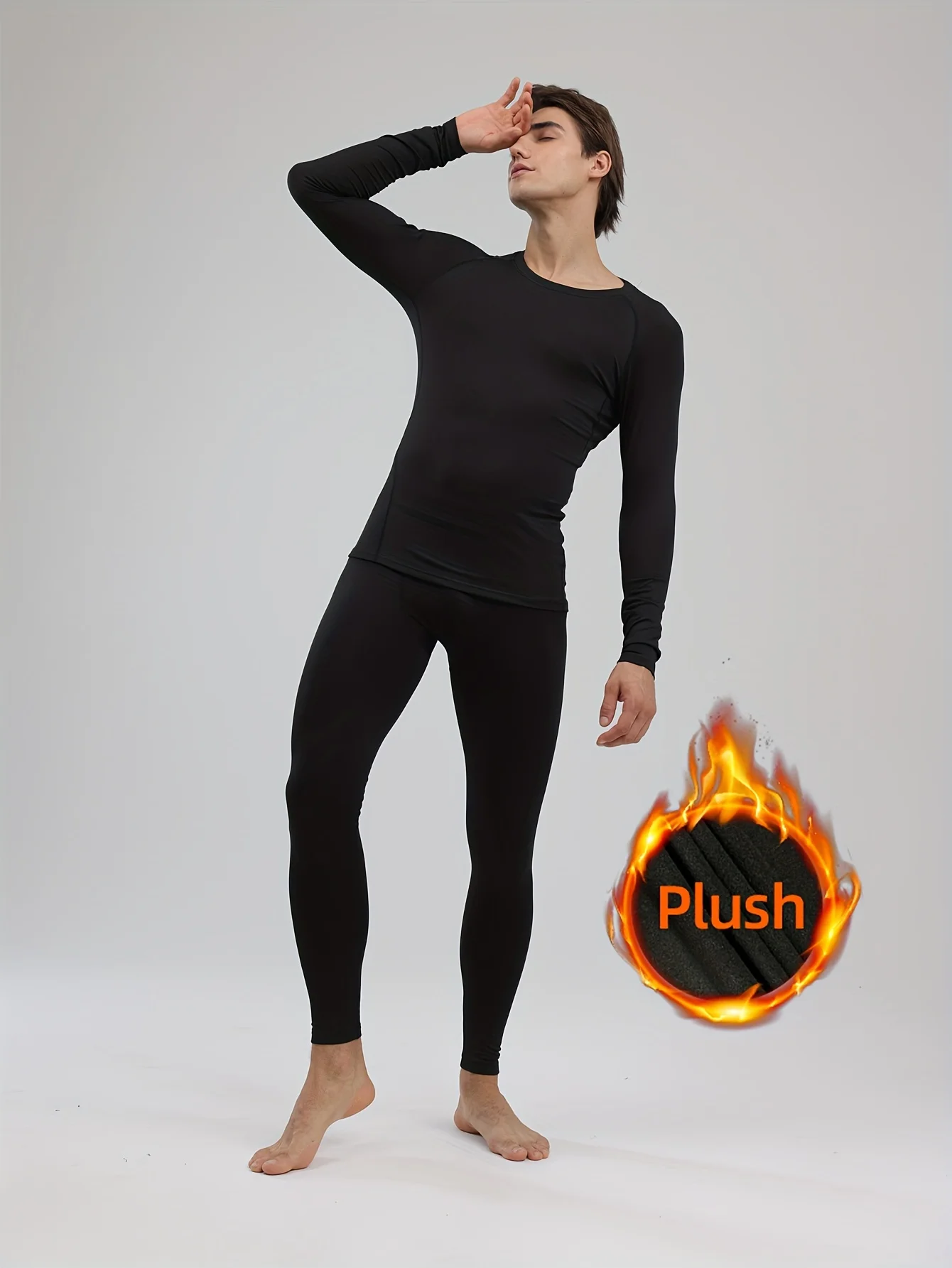 Sports thermal underwear set, quick drying thermal jacket and elastic compression pants, suitable for outdoor sports, home warm
