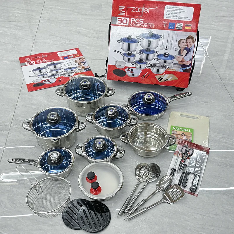 High-Quality 30-Piece Multi-Function Stainless Steel Pot and Pan Set for Kitchen