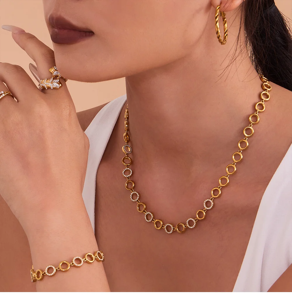 Waterproof Gold Plated Necklace & Bracelet Jewelry Set