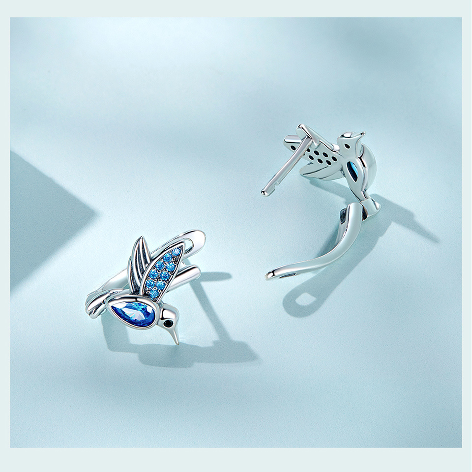 Elegant 925 Sterling Silver Hummingbird Earrings with Blue Stones