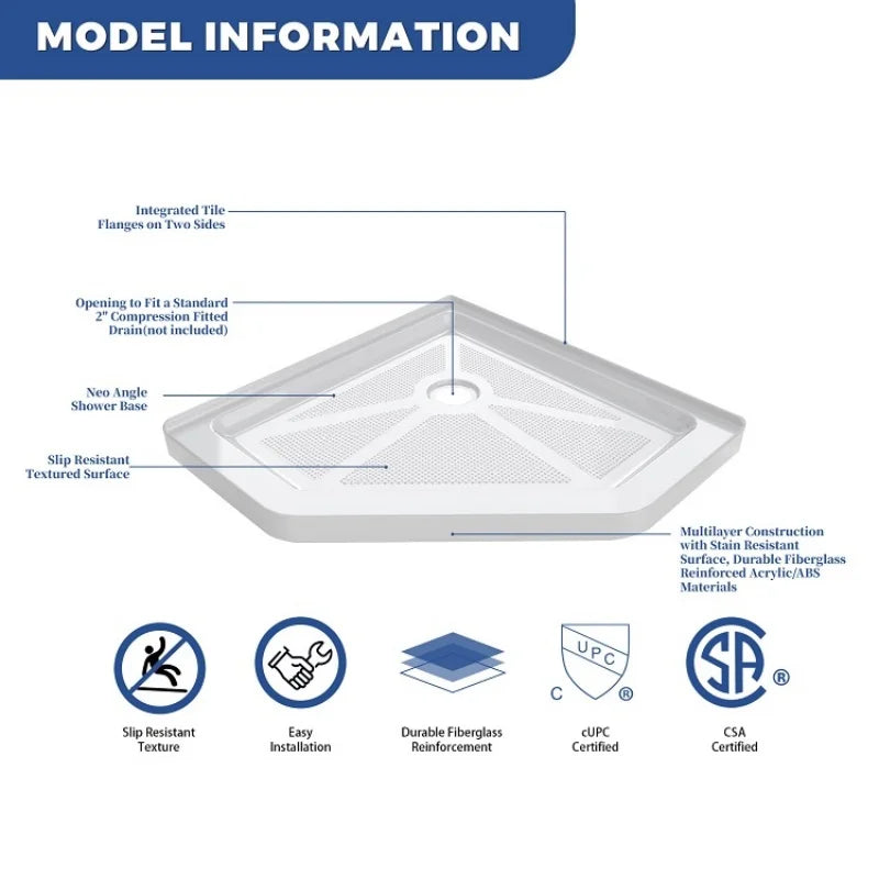Stock in USA Bathroom Center Drain Shower Base Anti Slip Texture Diamond White Acrylic Shower Tray
